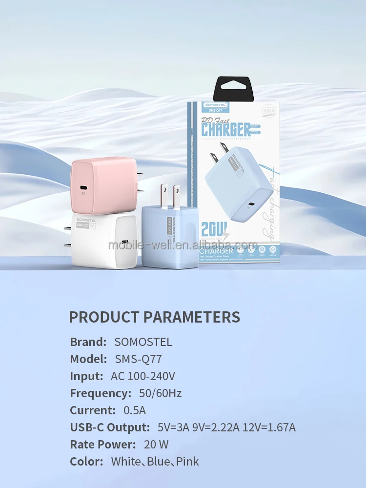 Factory Somostel SMS-Q77 PD 20W 2 in 1 FAST TRAVEL PD CHARGER + PD CABLE for Mobile Phone