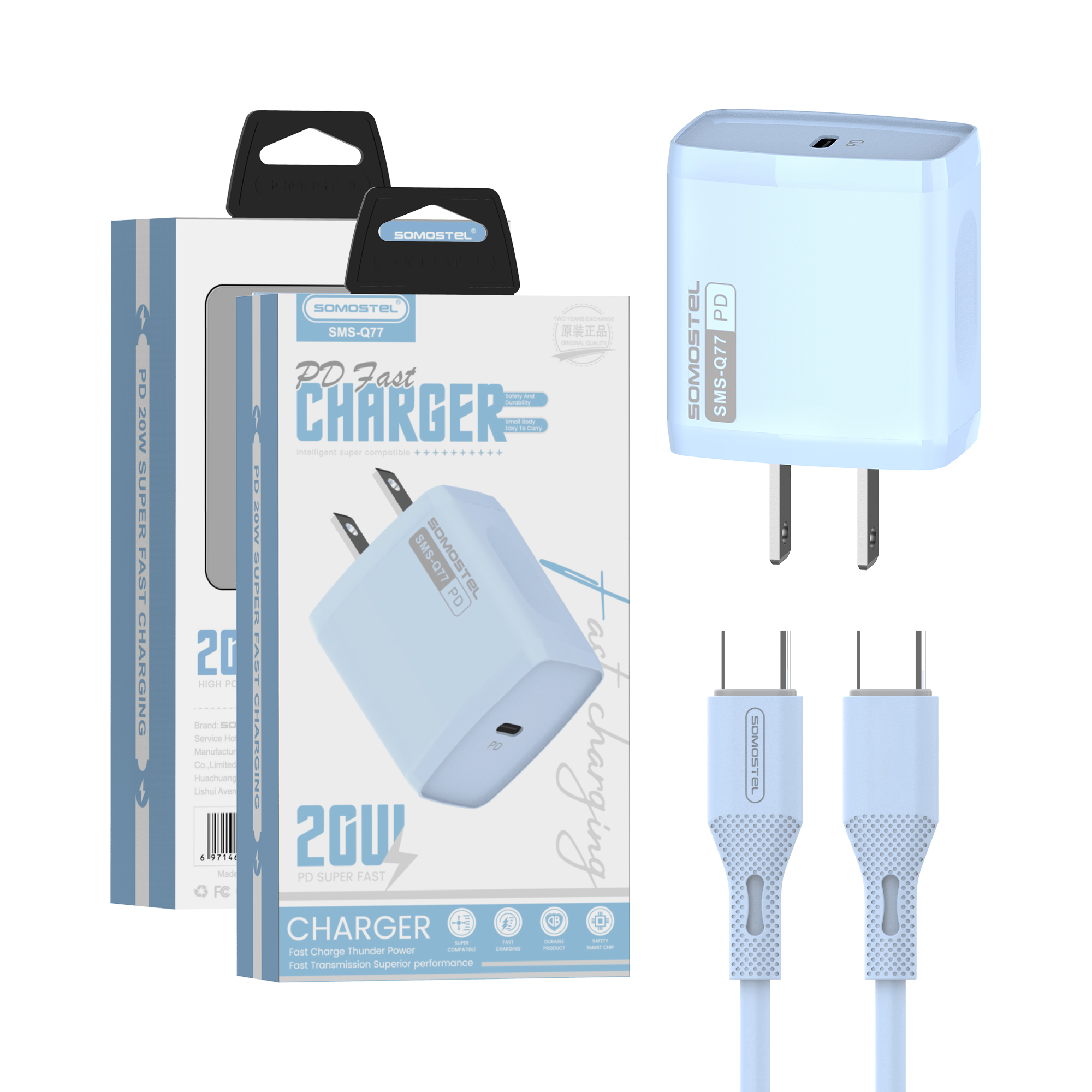 Factory Somostel SMS-Q77 PD 20W 2 in 1 FAST TRAVEL PD CHARGER + PD CABLE for Mobile Phone