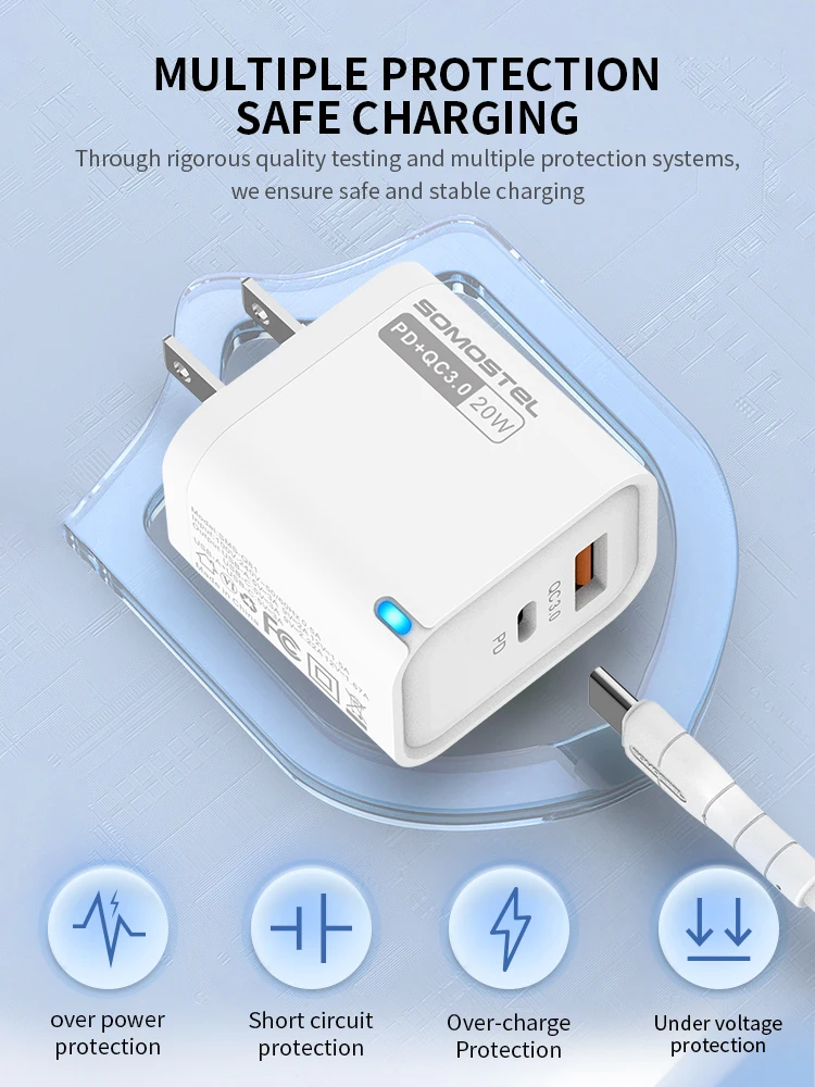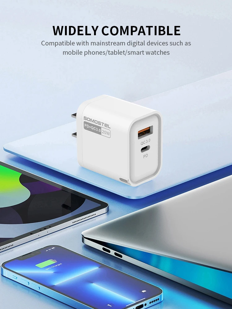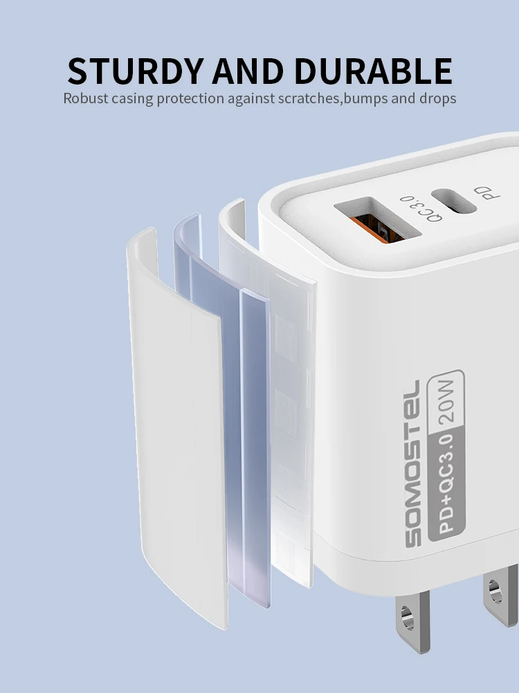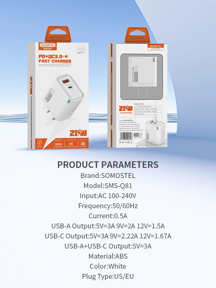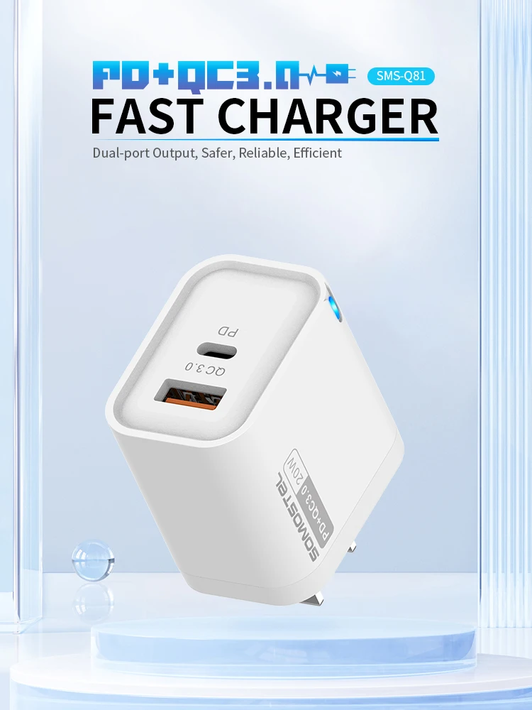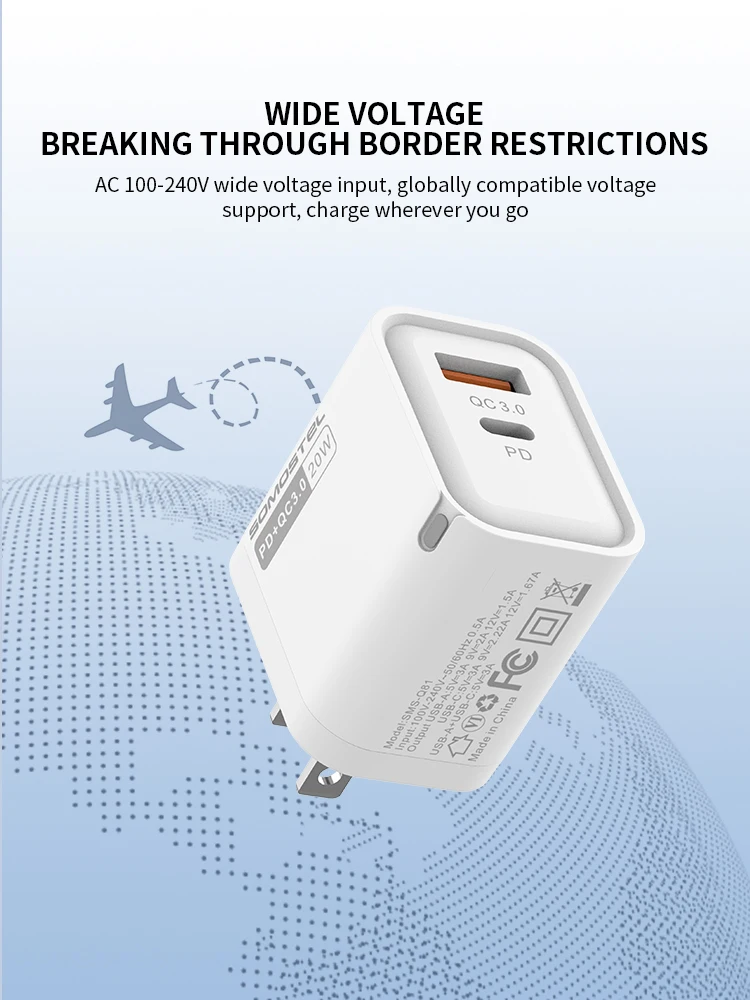 SMS-Q81PD & QC3.0 20WUSB-A & USB-C FAST TRAVEL CHARGER【US;EU】White