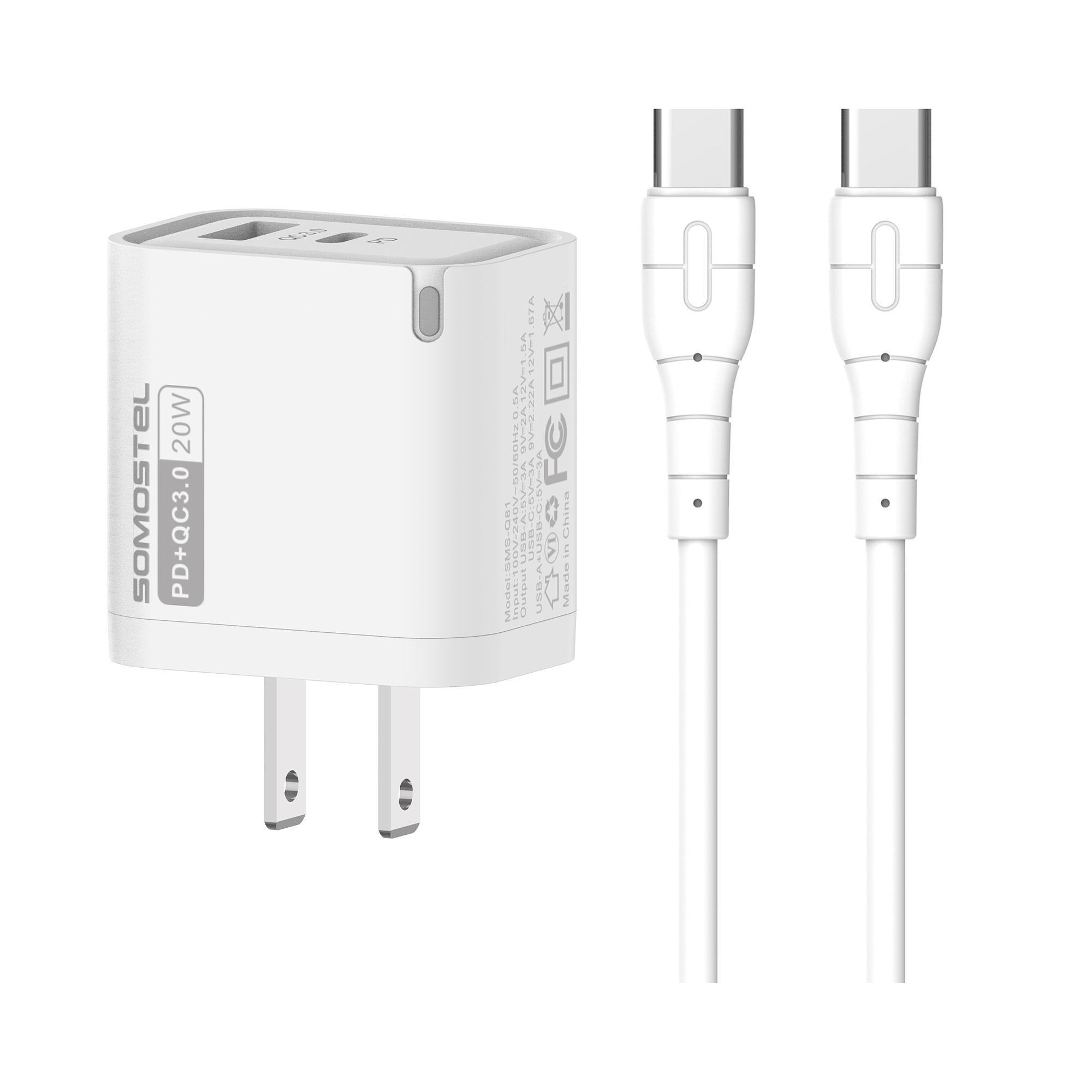 SMS-Q81PD & QC3.0 20WUSB-A & USB-C FAST TRAVEL CHARGER【US;EU】White