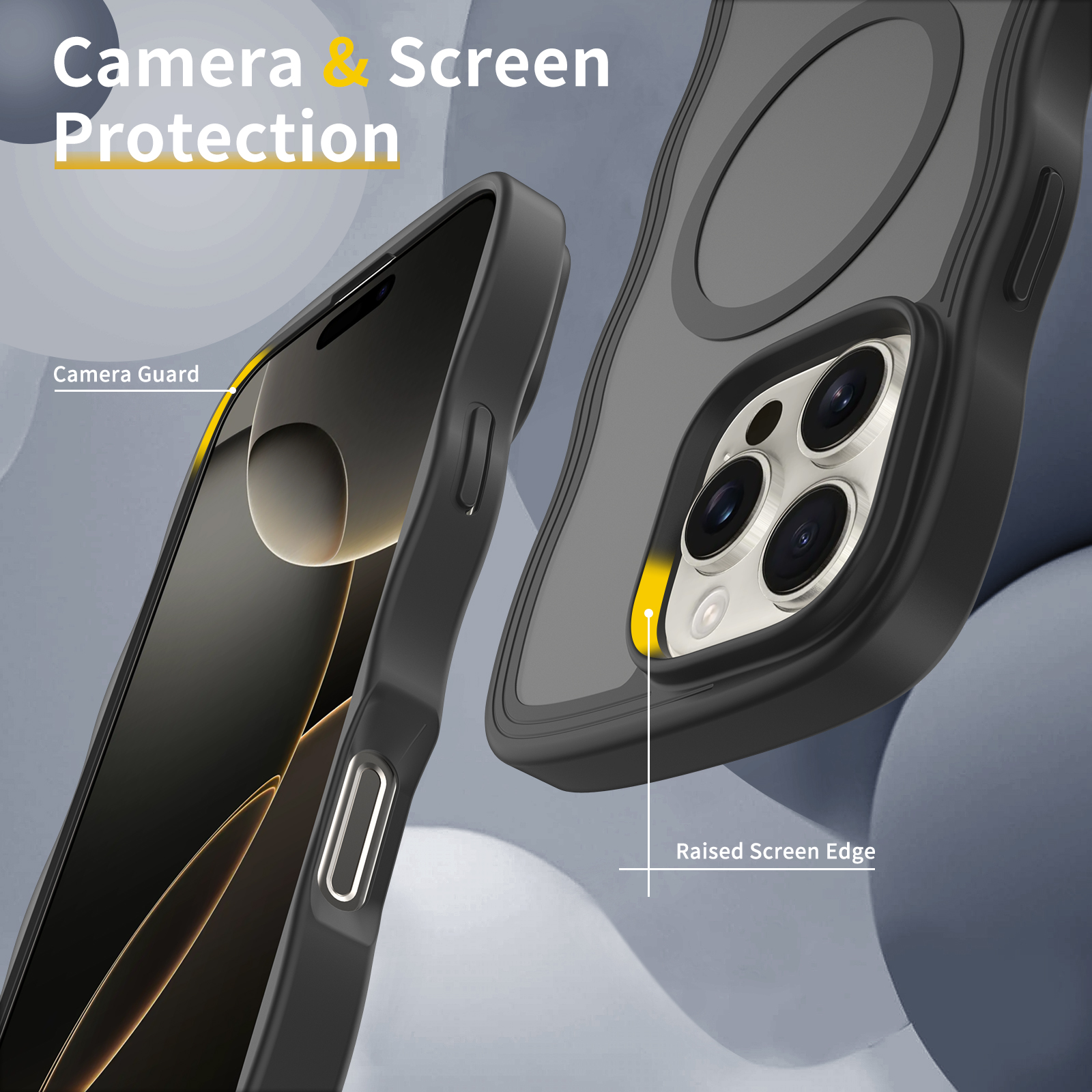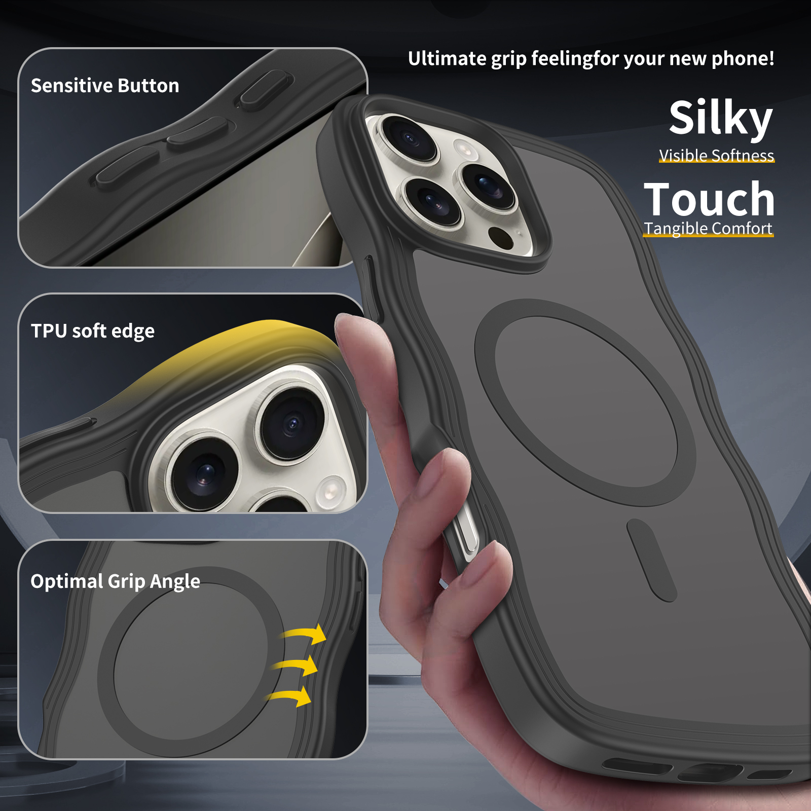 For iPhone 16 Pro Max Case Skin Feeling Wave Phone Case Shockproof Wireless Charging Magnetic Mobile Phone Case for iPhone