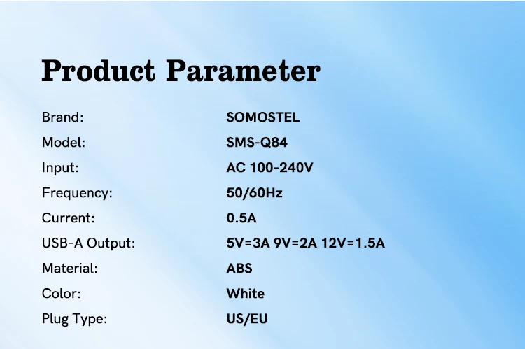 Be the first to review “SMS-Q84 QC3.0 18W USB Charger with Cable OEM/ODM Cell Phone Charger for SAM IOS HW XM Cargador Rapido US EU Plug Travel Adapter” Cancel reply