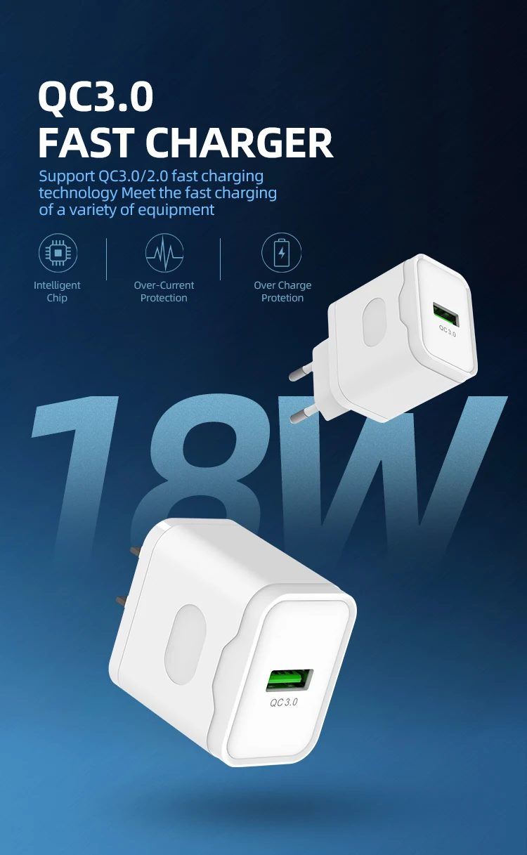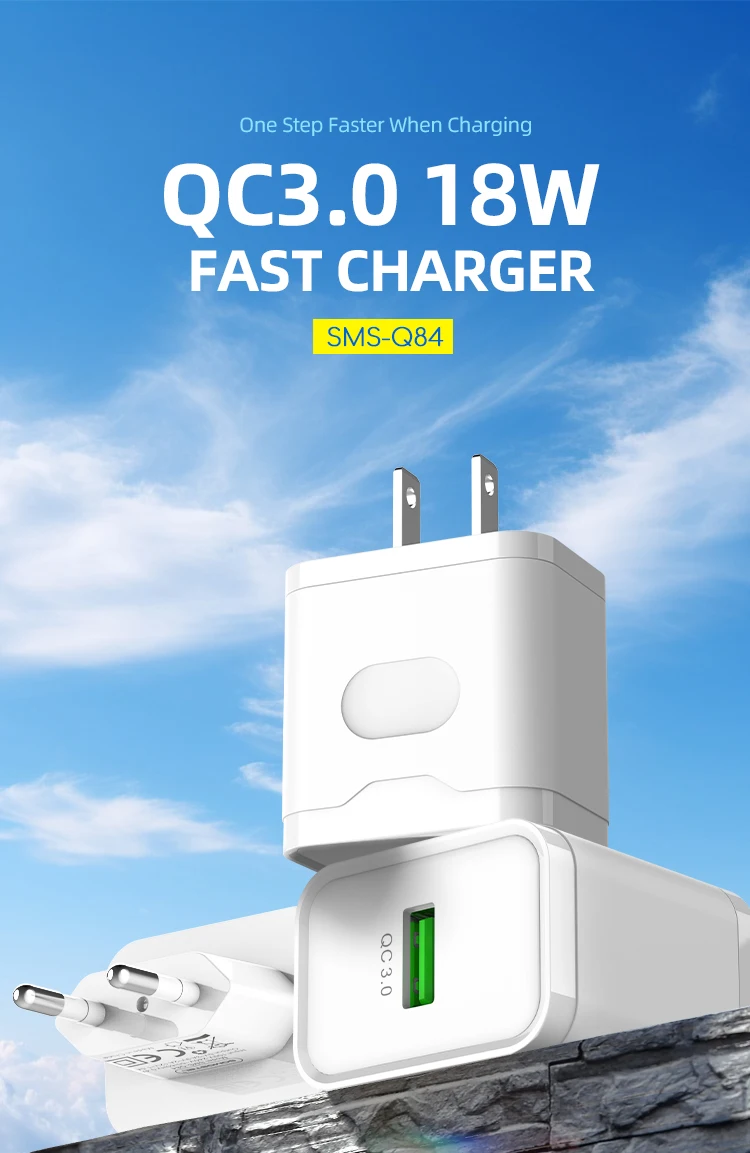 SMS-Q84 QC3.0 18W USB Charger with Cable OEM/ODM Cell Phone Charger for SAM IOS HW XM Cargador Rapido US EU Plug Travel Adapter