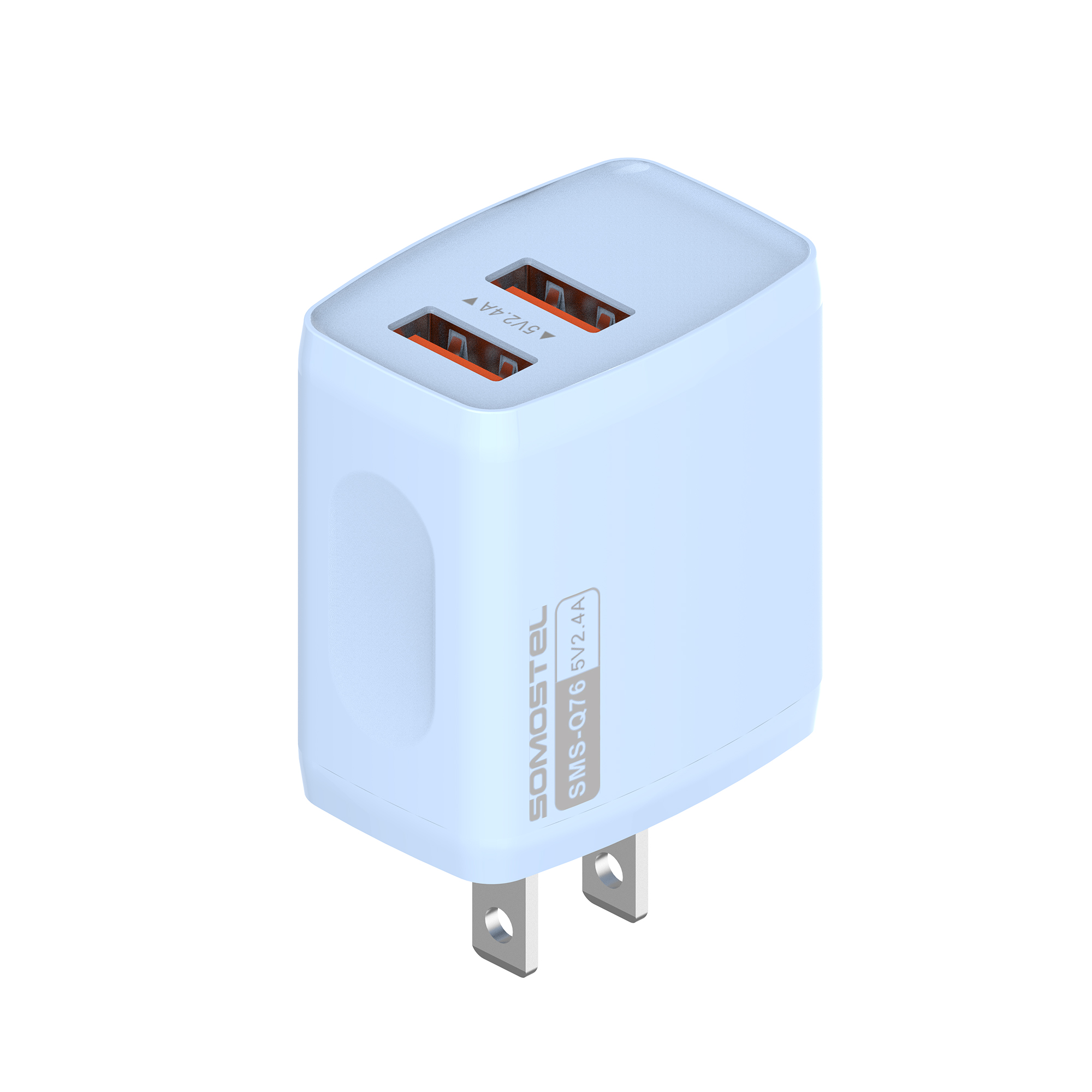 Somostel Phone Dual USB Wall Charger with Exclusive Color-coordinated USB Cable 2.1A Fast Charging Travel Chargers EU US Plug
