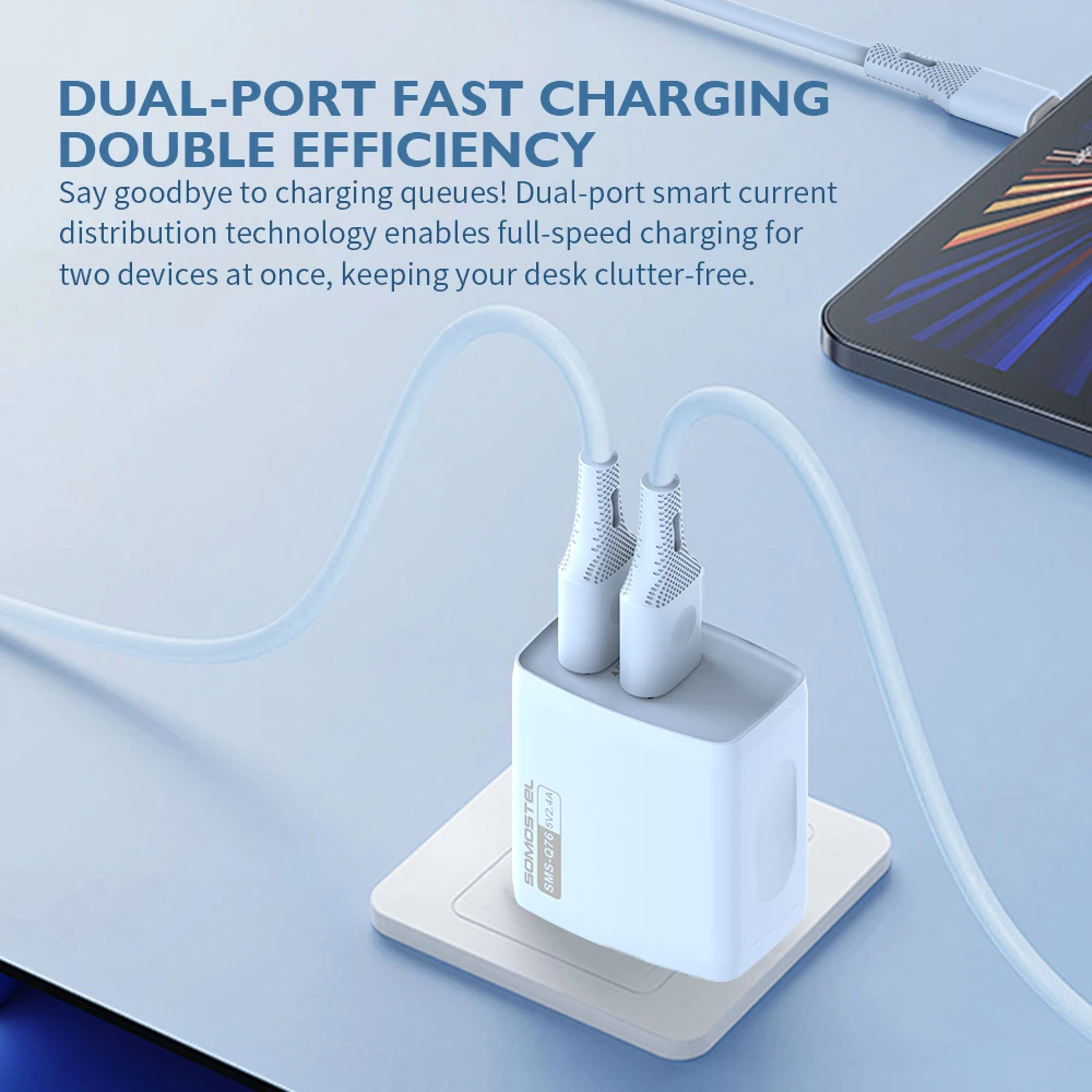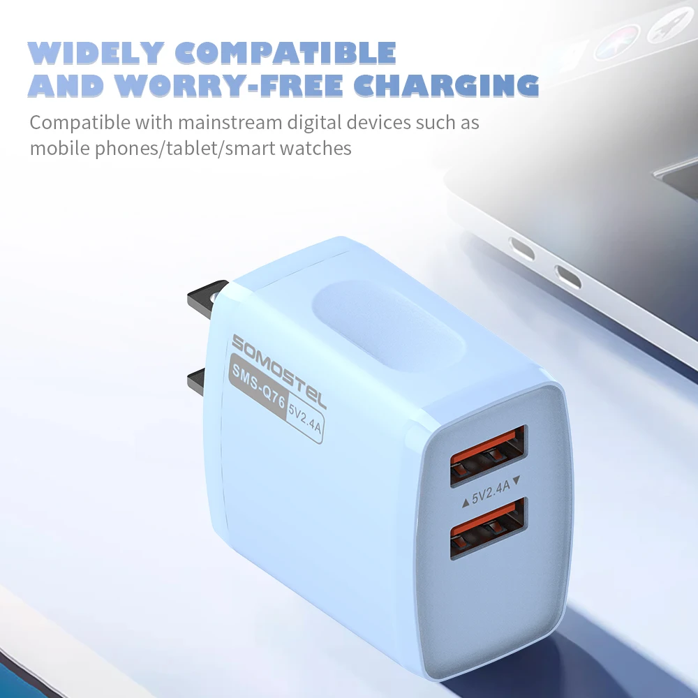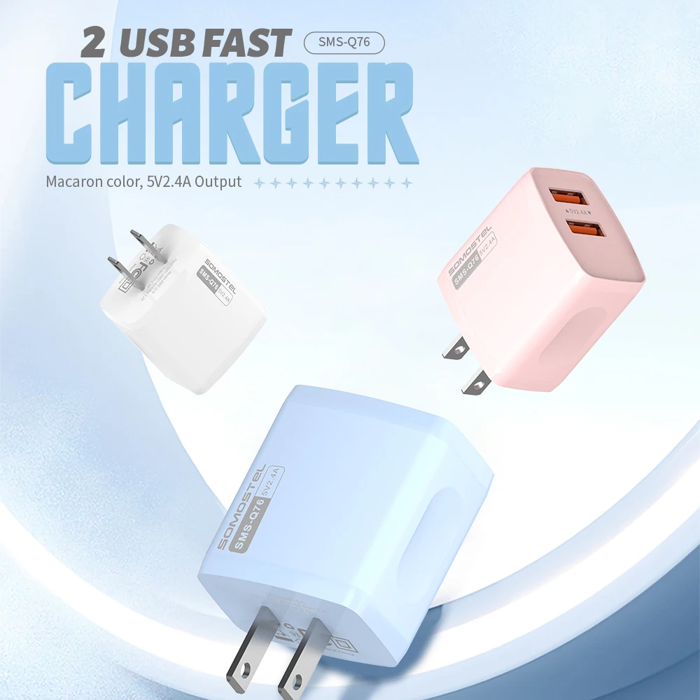 SOMOSTEL Q76 Wholesale Fast Charger 2.4A Mobile Phone Dual Usb Charger For iphone 16/Pro Max In Stock
