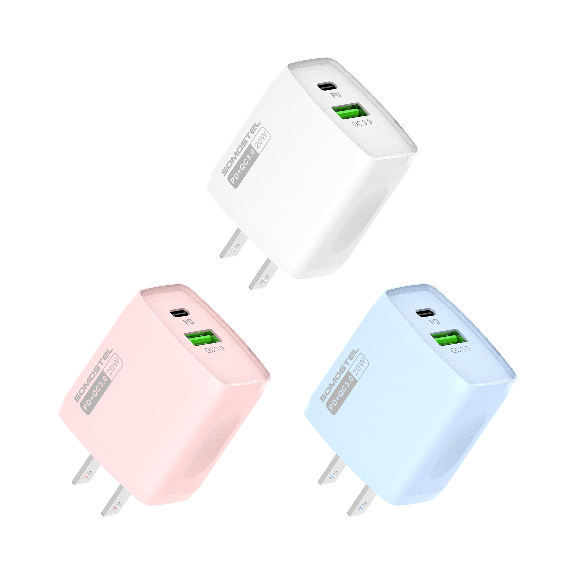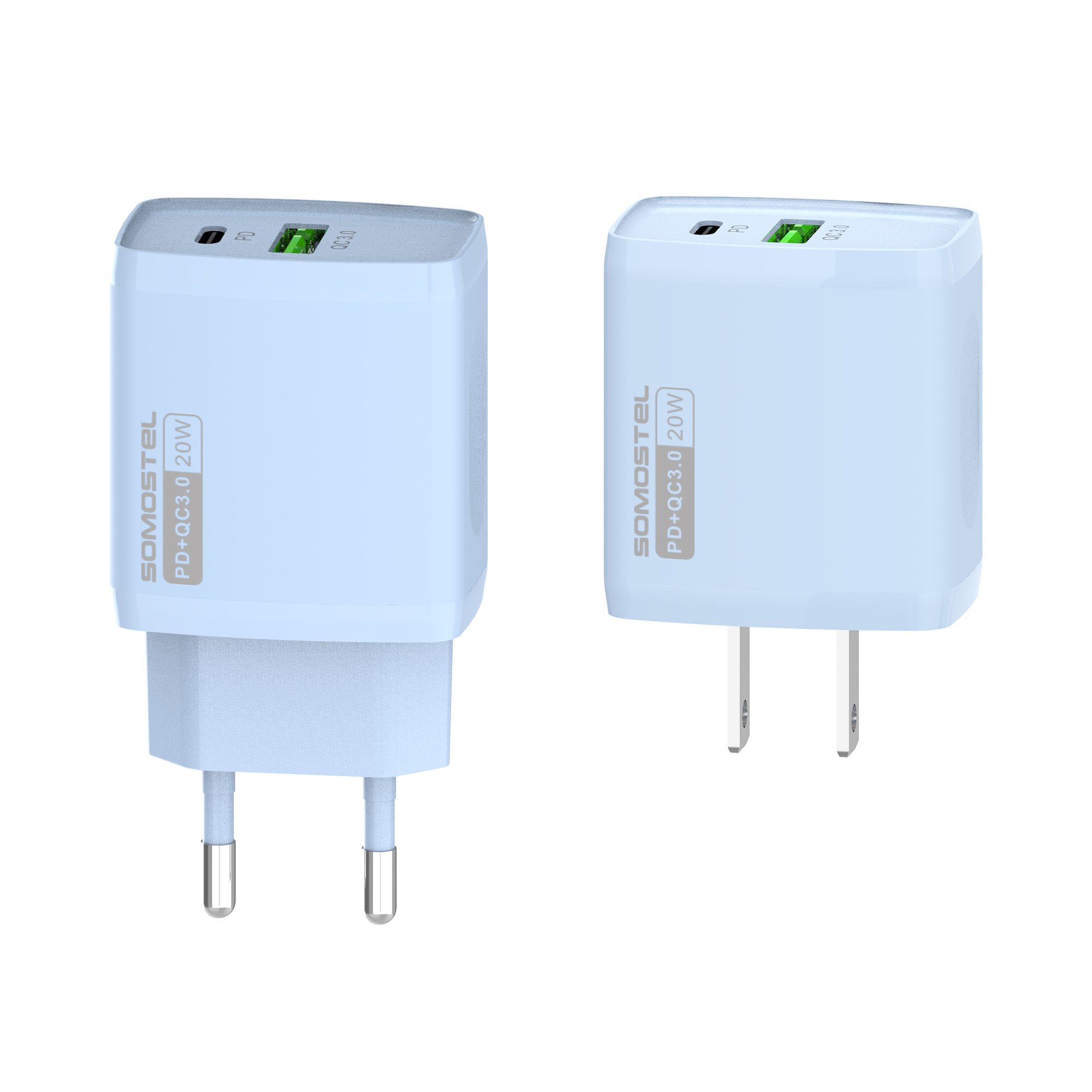 Somostel Wholesale PD 20W Mobile Phone USB Wall Charger Q.C.3.0 Fast Charging Type C EU US Plug Travel Chargers Adapter