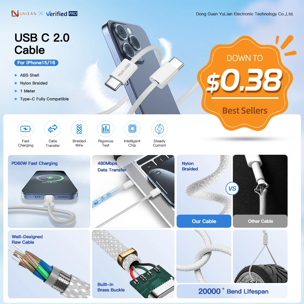 Be the first to review “UNIEAN OEM 60W PD 3A USB2.0 Fast Charging Type-C Cable Colorful Nylon Jacket USB to Cable for Mobile Phone Wholesale” Cancel reply