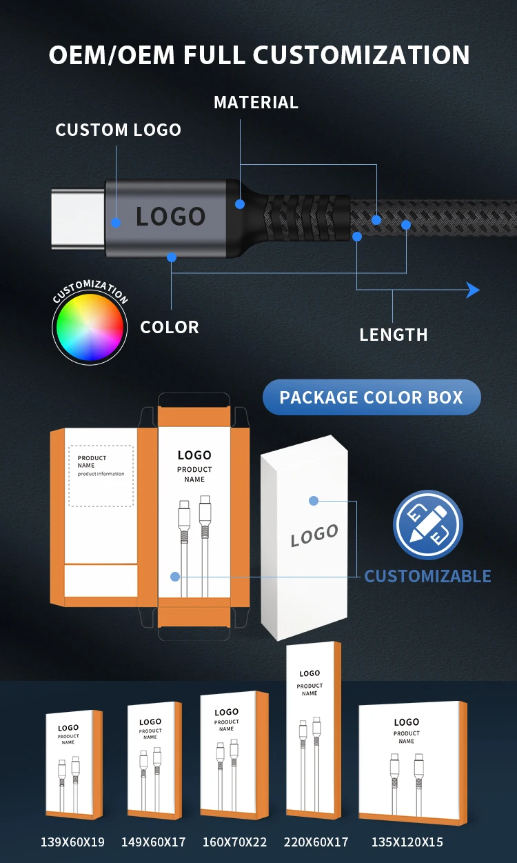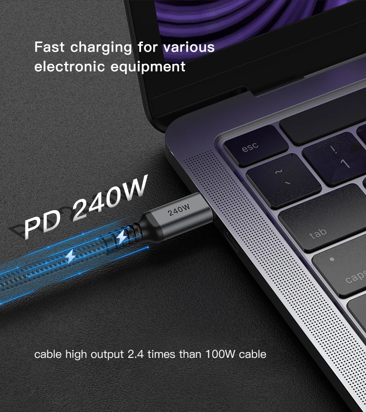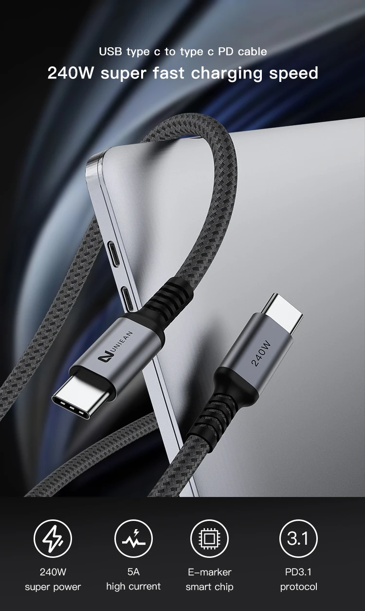 | Features | – High quality braided cable with aluminum housing. – PD3.1 protocol. 240W high power fast charging. – 5A high current. fast charging for laptops/tablets/phones. | |||||