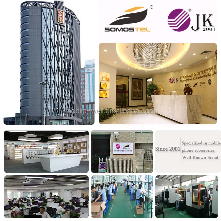 Guangzhou JQX Import & Export Co.. Ltd. is a company has 15 years experience in manufacturing all kinds of mobile phone accessories. like mobile phone case. screen protector. phone charger . cable usb . digital product ect.We has an professional and experienced technical QC team.15 production lins. over 200 employees which can offfer our clients high quality products and good pre-sale and after-sale serviceAfter received great reputation among our clients from all over the word. we establish our own brand: JK and SOMOSTEL.