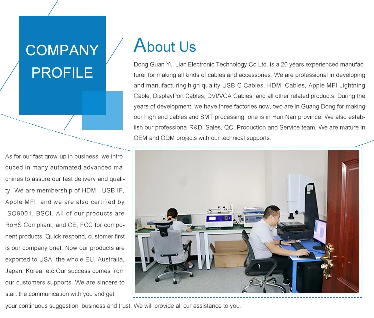 Yes. sure! We have more than 15 years experience in making cables and related service. Our R&D team will provide all technical supports. We have the certificates of ISO. BSCI. CE. RoHS. we are membership of USB IF. HDMI. Apple MFI.