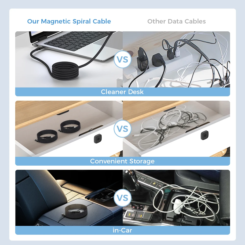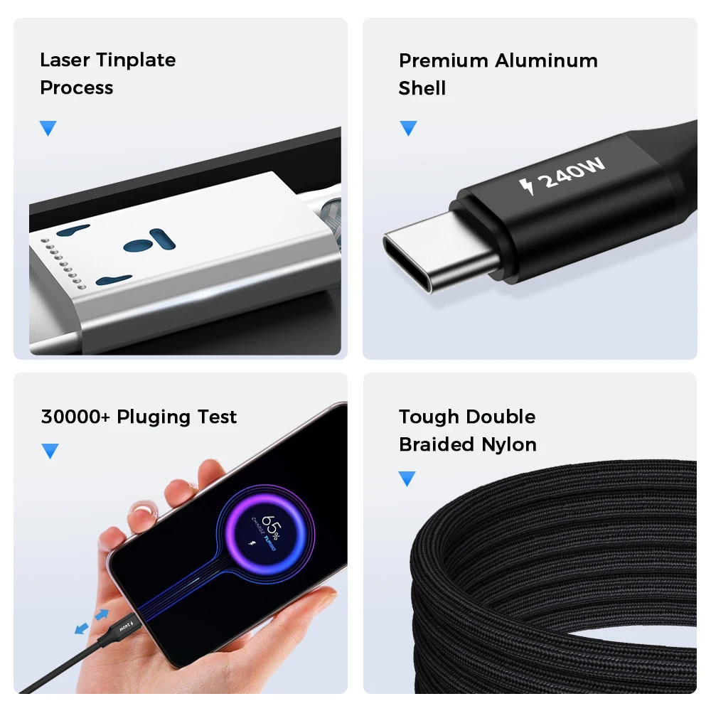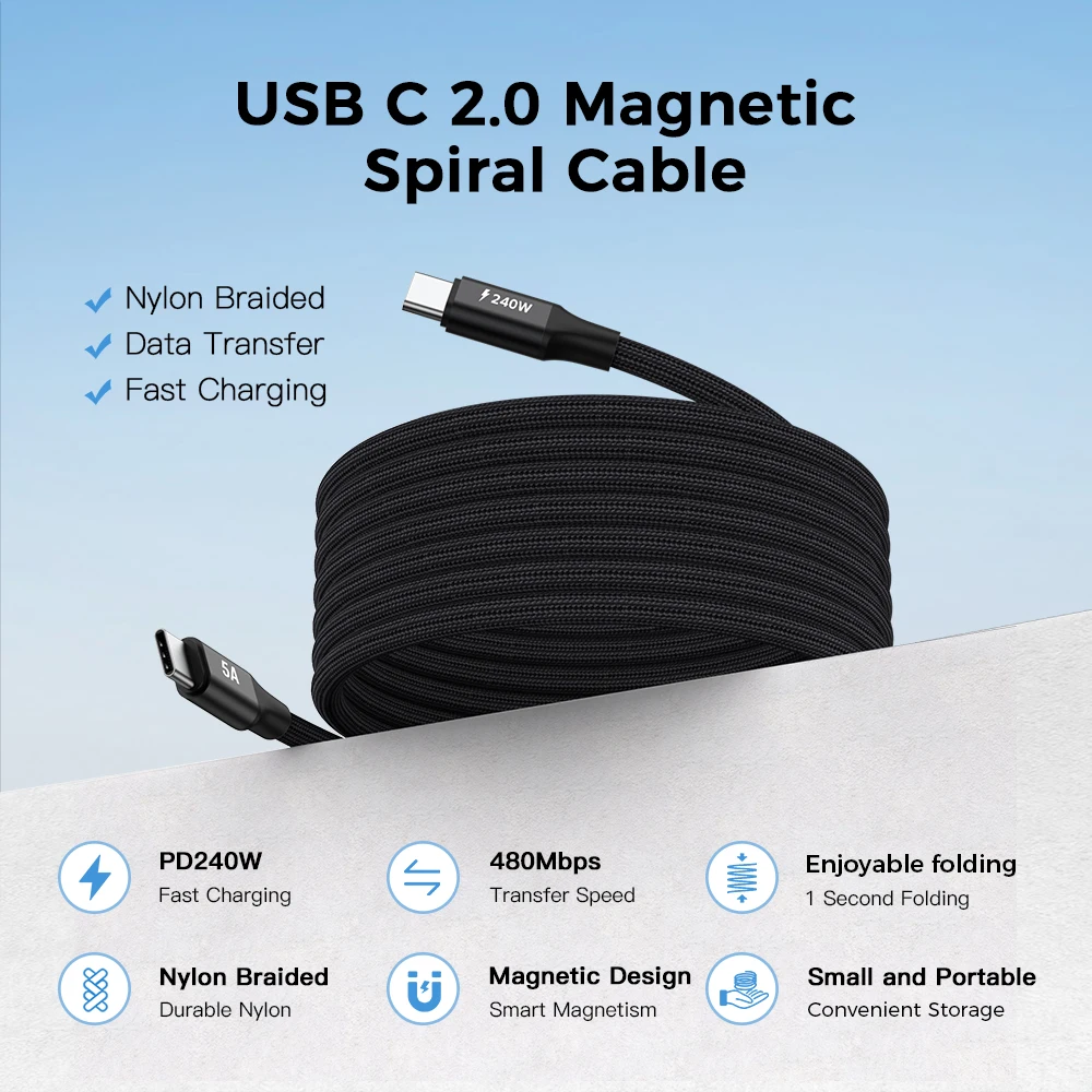 UNIEAN Factory Wholesale 2.0 Magnetic PD60W 100W 240W Braided Type C Usb Fast Charging Cable Data Cables for iphone to Android
