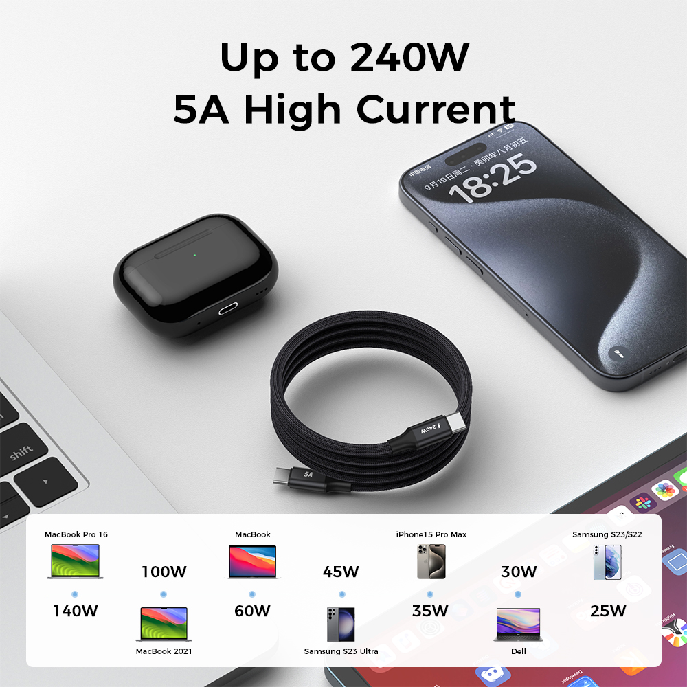 UNIEAN Factory Wholesale 2.0 Magnetic PD60W 100W 240W Braided Type C Usb Fast Charging Cable Data Cables for iphone to Android