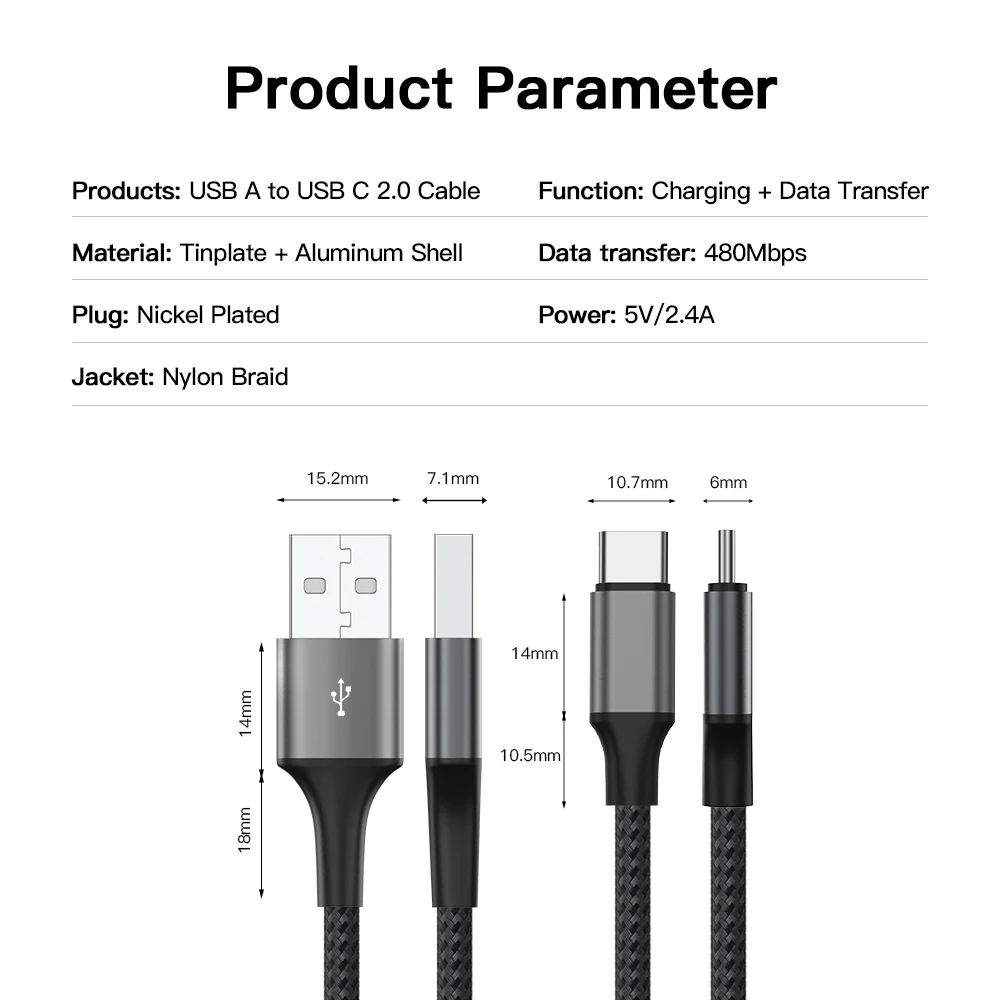 UNIEAN Factory Wholesale 2M 5V2A 60W Type C USB Fast Charging Cable 2.0 for Iphones Printers Computers