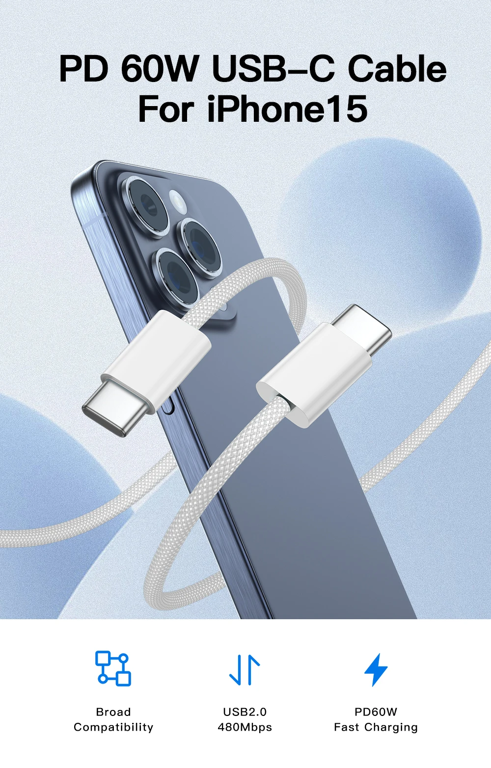 UNIEAN Wholesale 2.0 USB-C Charging Data Cables 2.0 3A 60W Type c Cable Fast Charging for Mobile Phone OEM ODM